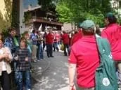 Bereits bei der Anmeldung sah man den Teilnehmern/innen die gute Laune nach einem so langen Winter sichtlich an. Die herrliche Aussicht auf den Alpenhauptkamm und die Sonne sorgten für den Rest.