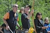 Nach der Begrüssung machten wir uns auf den Weg zu unserem ertsen Ziel auf dem gelben Parcours welches die Scheibe 6 war. Nach einem etwas anstrengenden Aufstieg erreichten wir den stehenden Bären. Der Schuss durch das Fenster der Zweige beeindruckte mich schon sehr und ich konnte es schon gar nicht mehr erwarten, dass das Turnier endlich beginnt.