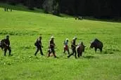 Einige Highlights haben es uns natürlich besonders angetan. Z.B. das Bison über Kuppen und die freie Wiese auf  ??? m, die Steinböcke im Felsen, der steile Bergabschuss auf einen Puma,  röhrende Hirsche auf der freien Wiese, über die Ache ein Wolf, eine Schneegoaß in ziemlicher Entfernung und natürlich der traditionelle Ritt auf dem zahmen aber vorerst noch ungebändigten Rauriser Ross.