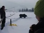 Die Bisons wurden vom Schakal aus dem Hinterhalt beobachtet,